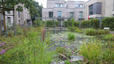 An vielen Orten in Hamburg gibt es Maßnahmen, die zeigen, wie die Schwammstadt in Hamburg realisiert werden kann. Hier erfahren Sie mehr über ausgewählte Projekte - von Deutschlands erstem Regenspielplatz bis zu Sportanlagen mit integriertem Rückhaltevolumen.