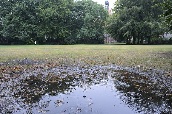 Durch die Flächenversickerung wird das Regenwasser über eine flächige Verdunstung und Versickerung (Beitrag zur Grundwasserneubildung) in den Wasserkreislauf zurückgeführt.