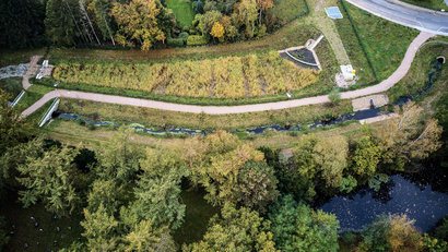 Im Gegensatz zu unterirdischen Reinigungsanlagen hat ein Retentionsbodenfilter eine naturnahe Bauweise. Durch die Vegetation und das daraus entstehende Ökosystem kann die Freiraumqualität positiv beeinflusst werden.